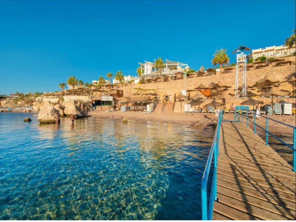 Sharm El Sheikh üdülőövezetében, kb. 500 m-re a Concorde Front Hotel privát strandjától. Strand transzfer (szezontól és időjárástól függően): ingyenes; 15 percenként; 07:00 - 01:00. A tengerbe fürdőcipő viselése javasolt, mert a part korallos, sziklás. Van kiépítve homokos rész is, ahol be lehet sétálni, de többnyire mólókon keresztül lehet bemenni a vízbe az élővilág megóvása érdekében. Bár, éttermek, szupermarket, bevásárlási lehetőségek kb. 500 m-re. Városközpontba shuttle (díjköteles). A Soho Square-től mindössze 5 perces sétára található. A szálloda 16 km-re van Naama Bay-től, a Sharm El Sheikh nemzetközi repülőtér 1 km-re található.