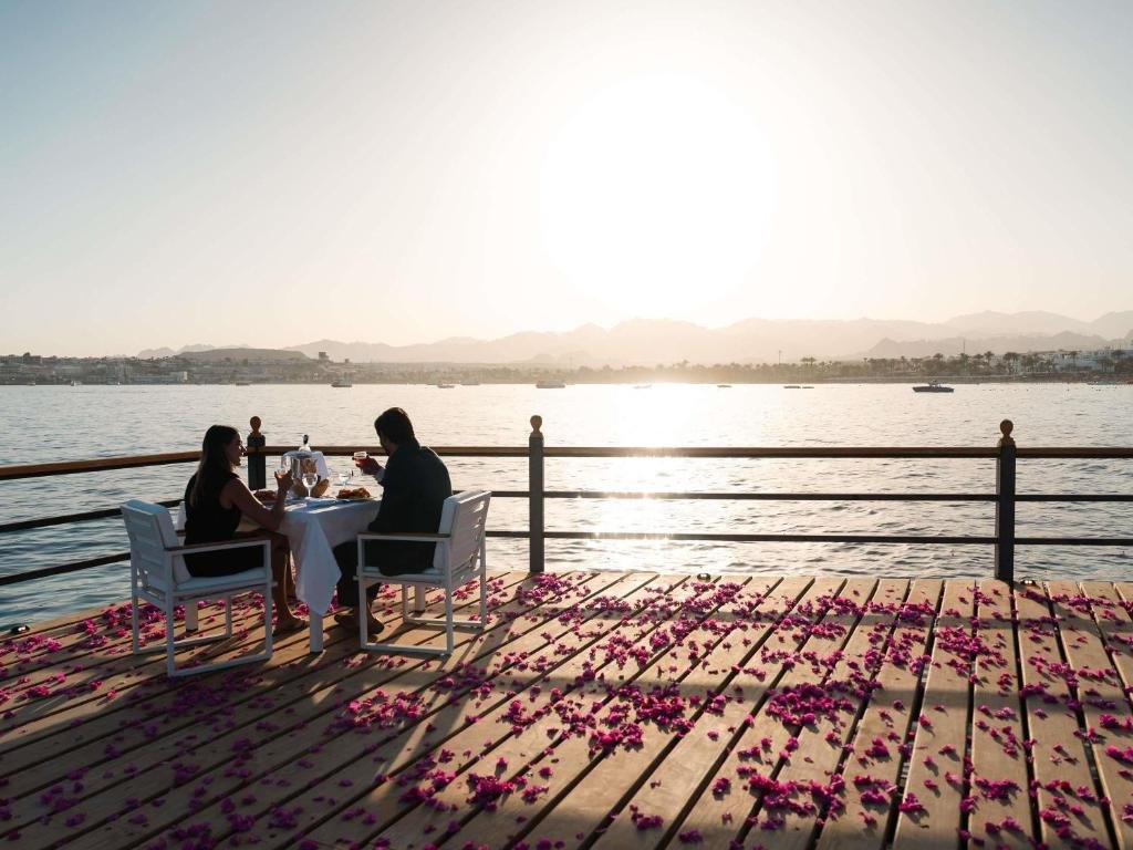 A Mövenpick Resort Sharm El Sheikh egy 5 csillagos üdülőkomplexum, amely egyedülálló fekvésének köszönhetően magasan a Naama-öböl fölé emelkedik, lenyűgöző panorámát kínálva az egész öbölre. Öt privát öböl található homokos stranddal, két mólóról közelíthető meg a tenger. A szálloda melletti sétány a nyüzsgő központba vezet, Sharm El Sheikh repülőtere pedig kb.10 km-re található.