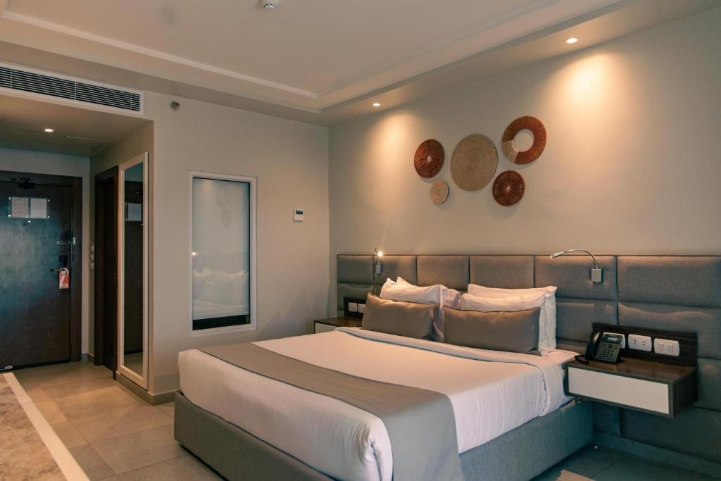 SZOBÁK: a Sunny Days Resort & Spa Elpalacio szobáiból lenyűgöző kilátás nyílik a Vörös-tengerre és a buja kertekre. Minden szoba elegánsan berendezett, modern felszereltséggel és kényelmes bútorokkal, hogy biztosítsa a pihentető tartózkodást. Élvezze a privát erkélyeket vagy teraszokat, amelyek tökéletesek a nyugodt környezetben való kikapcsolódáshoz. A medencére néző kétágyas szobák (DPZ/EPZ/TPZ) zuhanyzóval, WC-vel, műholdas TV-vel, telefonnal, mini hűtőszekrénnyel, széffel, légkondicionálóval felszereltek, némelyikhez pedig erkély/terasz is tartozik. A szobák tengerre néző kilátással (DZM/EZM/TZM) is kérhetők, illetve foglalható néhány kedvezményesebb árú promo (spar) szoba is (DZP/TZP), melyek felszereltsége megegyezik a kétágyas szobákéval. Ezenkívül elite szobák is rendelkezésre állnak tengerre néző kilátással (DRV/ERV), amelyek elegáns és kényelmes bútorokkal, valamint nagy panoráma ablakokkal rendelkeznek. A deluxe szobák egy része felújított. Foglalható medencére (XLD) vagy tengerre néző kilátással (DXM). Felszereltségük megegyezik a medencére néző kétágyas szobákéval.